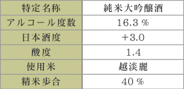 新潟産の新酒造好適米「越淡麗」を40%まで精白し、低温長期でじっくりと仕上げた最高級の純米大吟醸酒です。